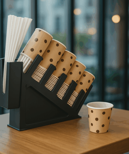• Bean Bliss-Heavy-Duty Cup Holder – 4-Grid Slanted Design with 1 Extra Slot | Durable ABS Countertop Dispenser for Café & Office21%
