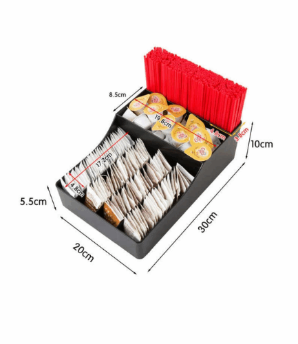 • Bean Bliss Coffee Condiment Organizer and Cup Holder – 6 Compartments for Sugar, Stirrers, Lids & More | Black Plastic Countertop Storage Station24%