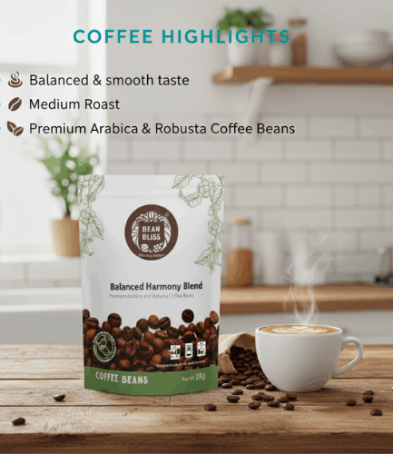 Bean Bliss Balance Harmony Blend – Premium Whole Coffee Beans – Medium-Dark Roast for Rich, Smooth Flavor – Freshly Roasted Arabica & Robusta Mix – Bold Energy Brew – 1kg Pack