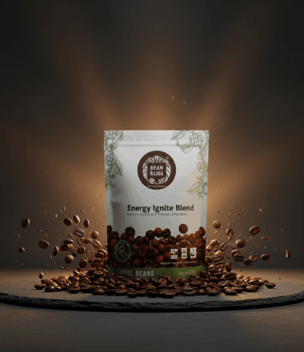 Bean Bliss Energy Ignite Coffee Blend – Premium Whole Roasted Coffee Beans – High-Caffeine Arabica & Robusta Mix – Bold, Smooth Flavor – Fresh Gourmet Roast – 1kg Bag