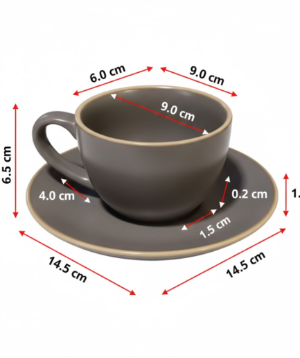 Bean Bliss 180ml Barista Friendly Stone Grey Stoneware Cappuccino and Latte Cup with Saucer – Microwave and Dishwasher Safe, Lead-Free – Set for Coffee Shop, Home, Office, Cafes, Restaurants