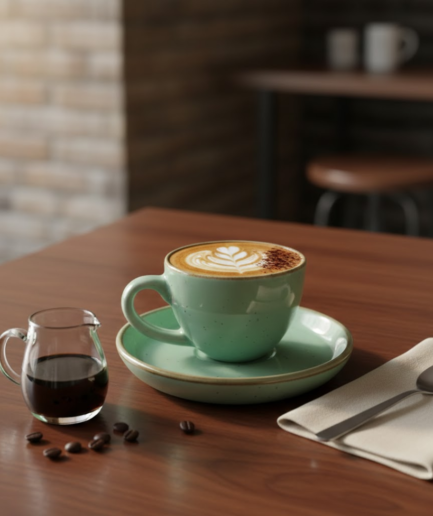 Bean Bliss 240ml Barista Friendly Mint Sparkle Stoneware Cappuccino and Latte Cup with Saucer – Microwave and Dishwasher Safe, Lead-Free – Set for Coffee Shop, Home, Office, Cafes, Restaurants