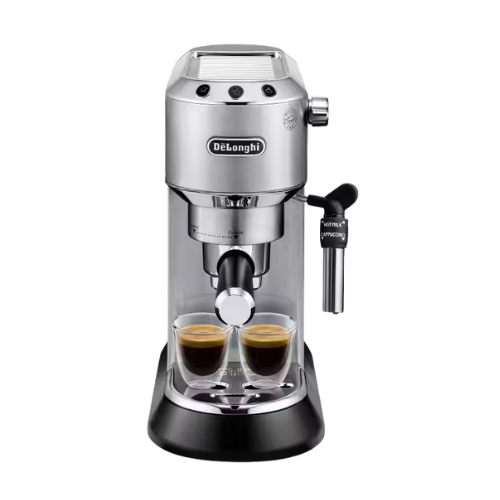 The DeLonghi Dedica EC685 delivers professional espresso and coffee drinks in a compact, stylish design. Features a steam wand for creamy froth, single/double shot options, and simple controls.