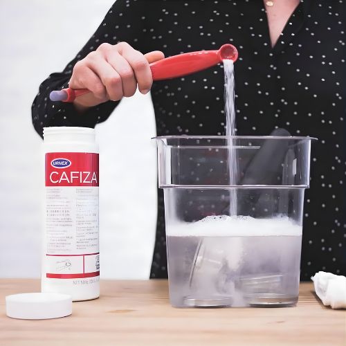 - Can also be used to make a soaking solution to clean portafilters, baskets, screens, and other parts